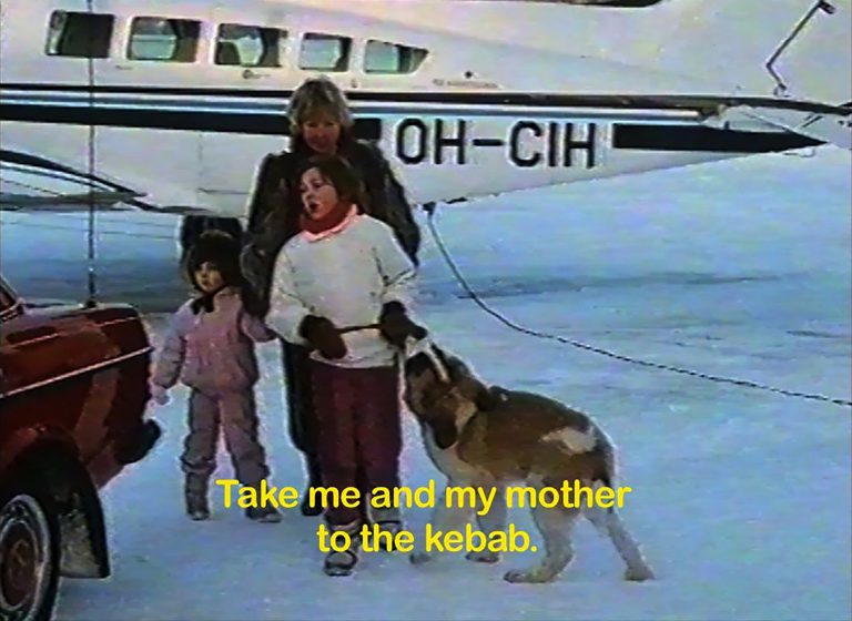 1985 eröffnete der israelische Vater von Dafna Maimon das erste Falafel und Kebab Restaurant in Finnland, den ‚Orient Express‘. Situiert in einem Einkaufszentrum im Stadtzentrum von Helsinki, brachte es Finn*innen bisher unbekannte Geschmäcker aus dem Nahen Osten näher. Gleichzeitig beschäftigte ihr Vater viele Mitarbeiter*innen, die keine finnische Staatsbürgerschaft besaßen und ermöglichte ihnen durch die Arbeitsbescheinigung das nötige Dokument für den Erhalt einer Aufenthaltsgenehmigung, die für viele den Ausgangspunkt für ein neues Leben in Finnland darstellte. Vor einigen Jahren entdeckte Maimon ein hoch budgetiertes Werbevideo von 1986, das ihr Vater in Auftrag gab und welches mit der eigenen Exotisierung arbeitet, um den Kebab zu vermarkten. Ausgehend von diesem autobiografischen Material entwickelte Maimon eine performative Videoinstallation, die sich zwischen persönlichen Erinnerungen, Familiengeschichten und der Darstellung einer patriarchalen Gesellschaft bewegt. Im Rahmen des Symposiums wird Maimon am 11.11 den Werbefilm zeigen und dazu ein Gespräch mit dem Publikum über ihren Arbeitsprozess und über ihre Erfahrungen zwischen zwei Kulturen in einer patriarchalen, aber als liberal geltenden Gesellschaft aufzuwachsen, führen. In der Galerie Wedding wird sie die Werbesets und die Umgebung reinszenieren und ein bespielbares Terrain aufbauen, in dem sie gegenwärtige, eigene Erfahrungen mit den Materialien ihres Vaters verschneidet.
