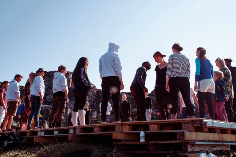 Ausgehend von der Geschichte der Inuit, deren Angehörige im 18. Jahrhundert zur Zurschaustellung nach Europa verschleppt wurden, geht Laakkuluk Williamson Bathory den Spuren ihrer Vorfahren nach und verknüpft sie mit gegenwärtigen Fragen: Was bedeutet es, in eine Rolle gezwungen zu werden? Wie sehr berufen sich Kulturen auf festgeschriebene Bilder? Wie lassen sich diese Bilder verändern, verzerren und übermalen? Durch die Kombination des traditionellen grönländischen Maskentanzes uaajeerneq mit zeitgenössischer Videokunst setzt sie in ihrer Performance Traditionen einem postkolonialen Blick aus. In einer kraftvollen Performance zwischen Tanz, Text, Video und orchestraler Musik schafft sie einen Raum, der sowohl eine Atmosphäre der Ironie und des Übermuts, aber auch der Gewalt und der Angst vermittelt.